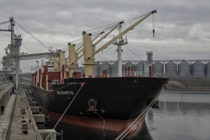 FOTO DE ARCHIVO. El granelero de bandera liberiana Valsamitis se ve en el puerto marítimo durante la carga de trigo para Kenia y Etiopía, en medio del ataque de Rusia a Ucrania, en la ciudad de Chornomorsk, Ucrania, el 18 de febrero de 2023. REUTERS/Nin