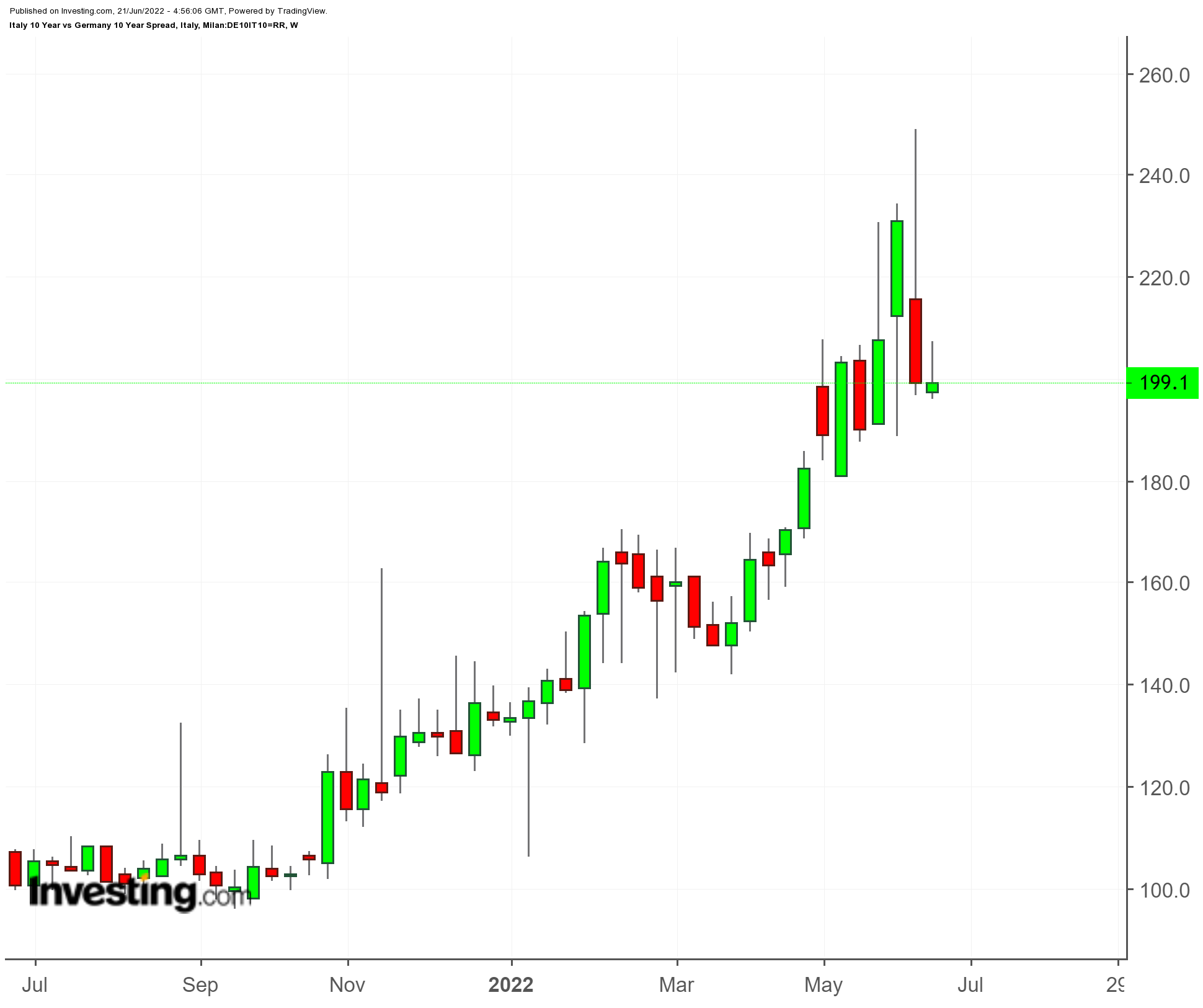 Después de que el BCE no detallara ninguna medida de apoyo tras su reunión ordinaria de política monetaria de la semana anterior, los inversores europeos vendieron los bonos italianos, haciendo que el rendimiento de los bonos a 10 años superara el 4% y ampliando el diferencial con los bonos alemanes a niveles no vistos desde que se iniciaran las compras de bonos de emergencia al comienzo de la pandemia.