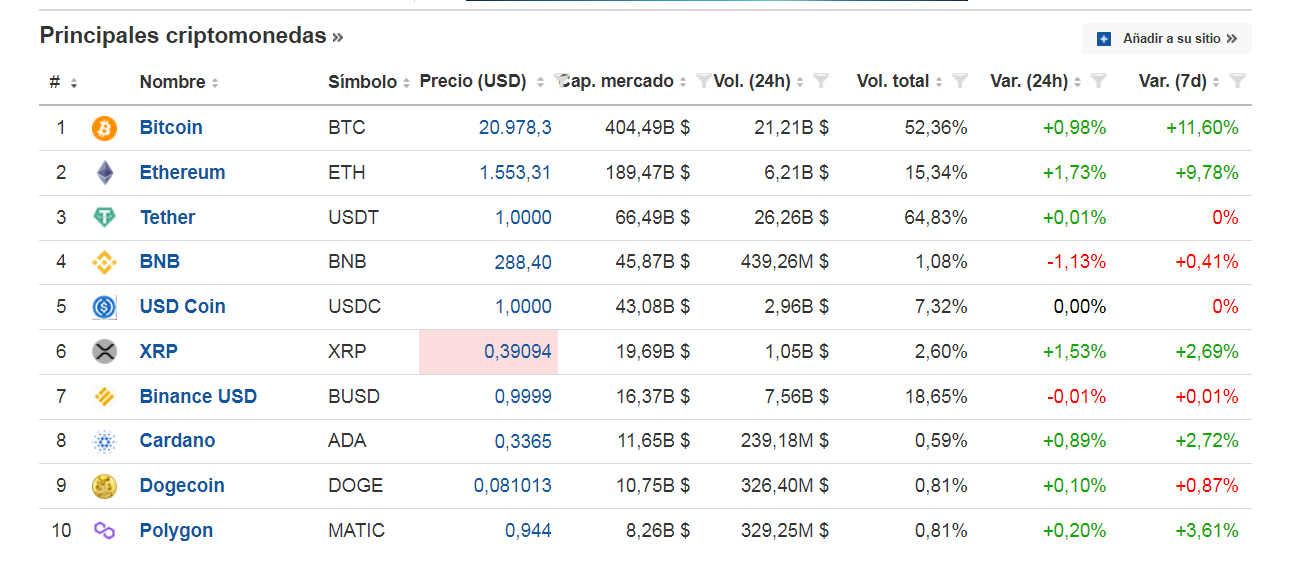 La evolución de las top 10 crypto es doblemente positiva durante esta semana, no sólo, se han aislado de las caídas que han sufrido los índices americanos, sino, que han continuado las subidas consolidando nuevos niveles y preparando el escenario para un nuevo impulso alcista.