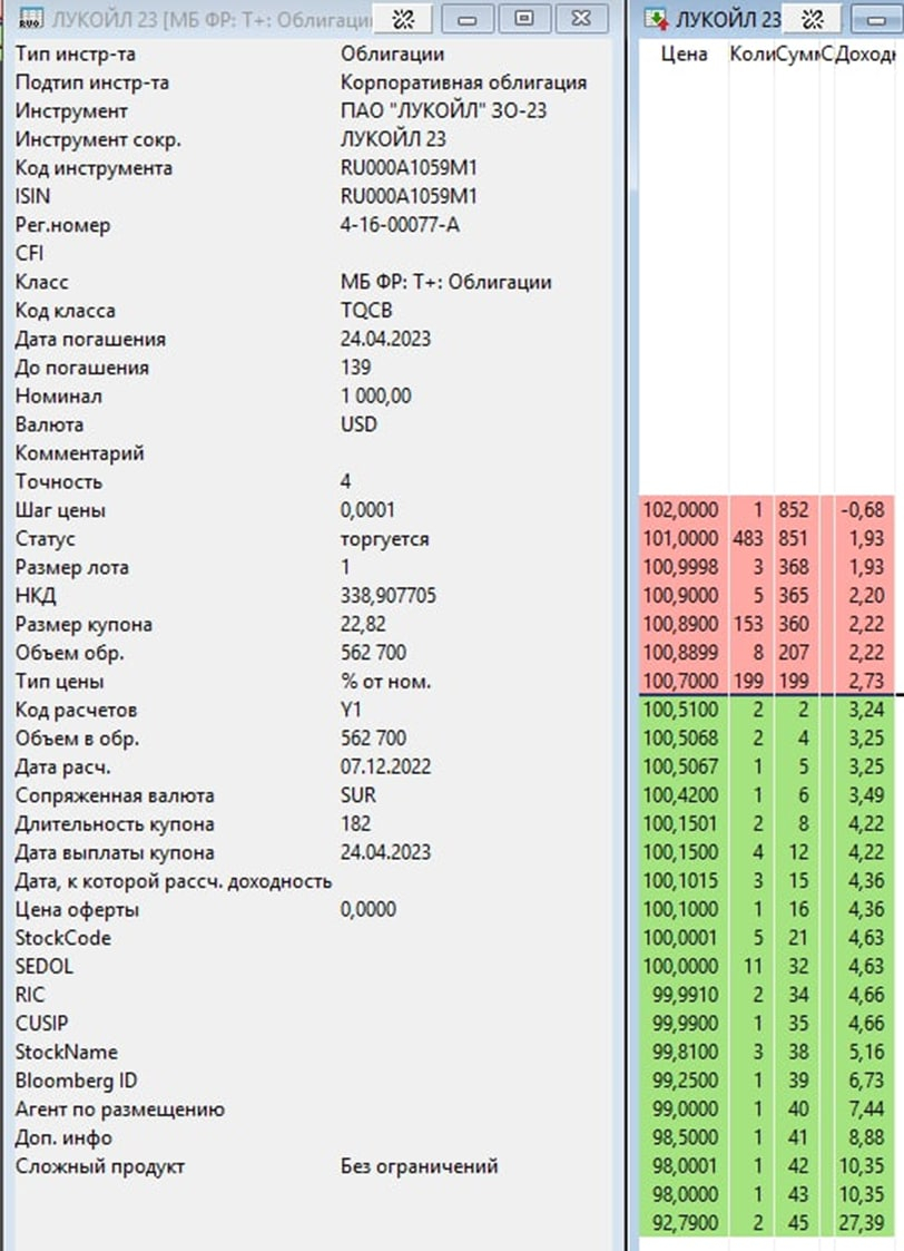 Предлагаю 2 примера из того, что можно купить за рубли как аналог долларовой или евровой облигации. См. иллюстрации. Это 2 бумаги, одна в долларах, вторая в евро, обе торгуются и рассчитываются в рублях как сопряженной валюте. Т.е. при их покупке за рубли вы получите в качестве дополнительного дохода или убытка положительную или отрицательную курсовую разницу.