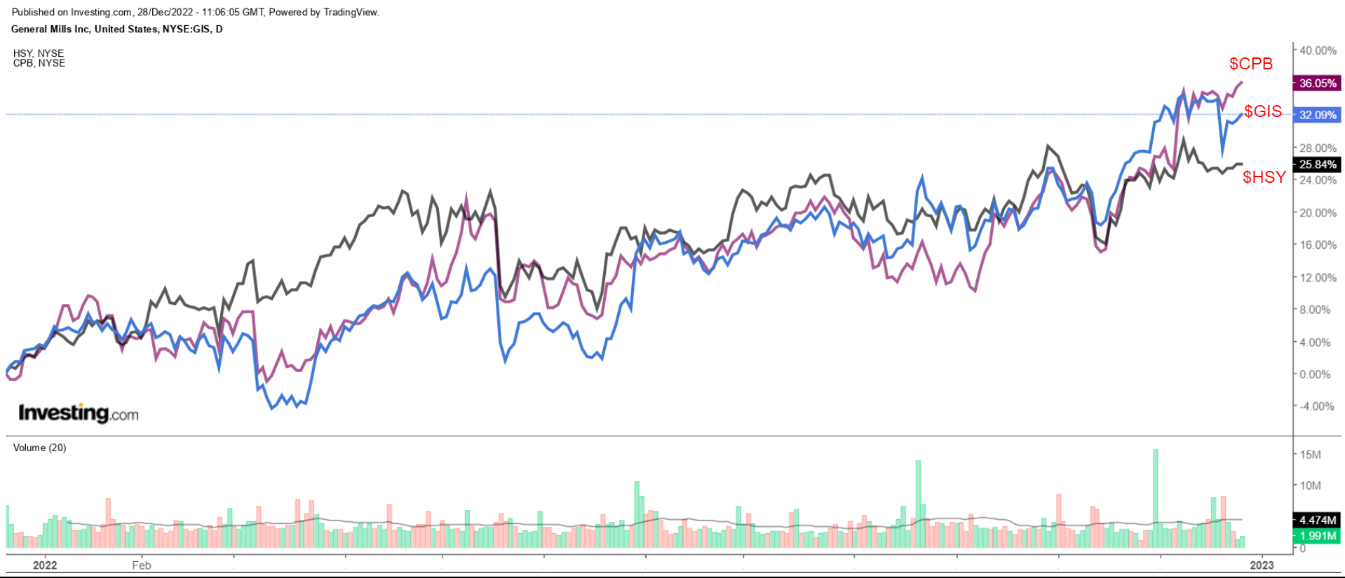 Mientras los inversionistas se preocupan por la subida de las tasas de interés, la elevada inflación y el debilitamiento del crecimiento económico, GIS, HSY y CPB tienen potencial para ofrecer fuertes rendimientos el año que viene, a medida que los inversionistas se apilan en áreas defensivas del sector de bienes de consumo básico.