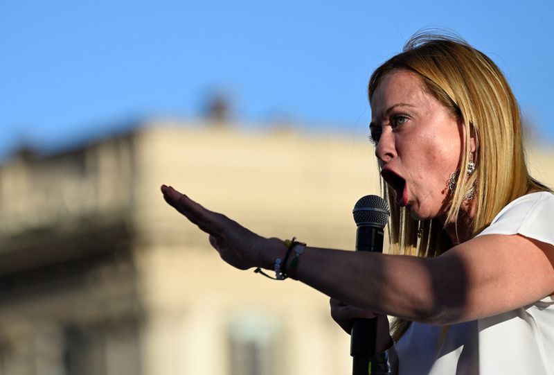 Giorgia Meloni, leader du parti d’extrême droite Frères d’Italie, participe à un rassemblement à Milan, Italie. /Photo prise le 11 septembre 2022/REUTERS/Flavio Lo Scalzo